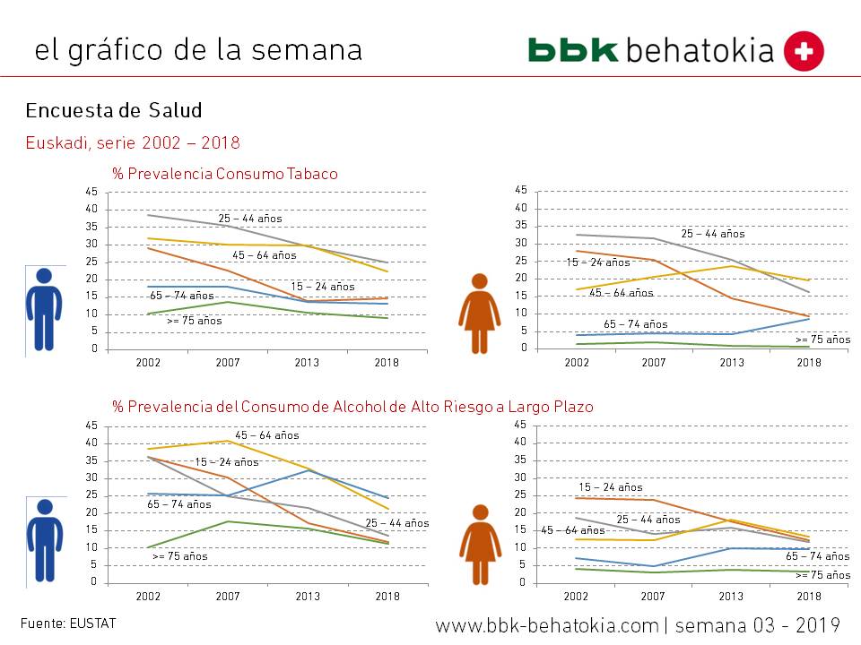 La última actualización de la Encuesta de la Salud publicada esta semana por EUSTAT, deja buenas noticias en la dependencia de los ciudadanos vascos en el consumo de alcohol y tabaco.