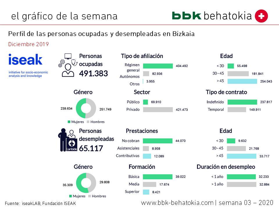 Una de sus líneas estratégicas es el Empleo (calidad del empleo, futuro del empleo, formación para el empleo, colectivos vulnerables, etc.), en el que desarrolla los observatorios Bizkaiker y iseakLab, que aportan información actualizada partiendo de las fuentes estadísticas oficiales.