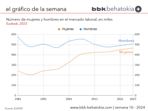 En 1981, del total de las personas con trabajo remunerado, las mujeres representaban menos del 30%. El 34,4% de mujeres en edad de trabajar tenían un trabajo remunerado. Los últimos datos (2023) muestran que ahora las mujeres representan más del 48% de la población con trabajo remunerado y alcanzan el 67,2% del total de mujeres en edad de trabajar. Del cómputo total de las mujeres en activo de 1981, había un 22,8% que se encontraban paradas; en la actualidad ese porcentaje se ha reducido, y es del 7,8%.