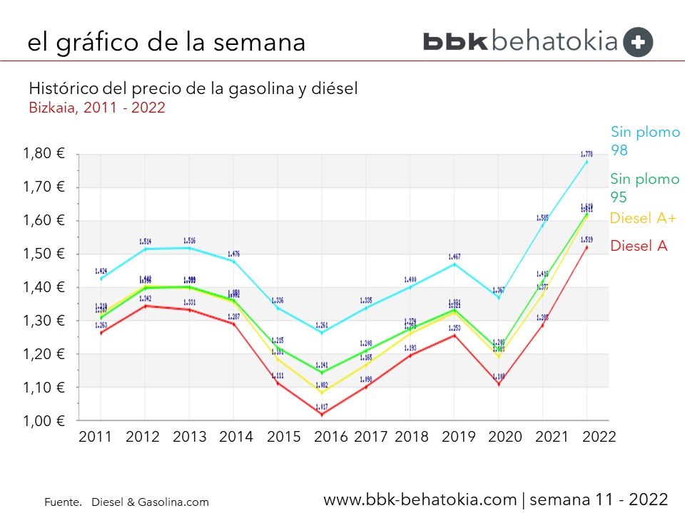 El gráfico de esta semana permite ver la evolución histórica en la última década, y lo extraordinario de la subida experimentada en los últimos meses.