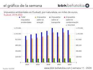 Los impuestos ambientales en 2022 supusieron el 6,7% del total de impuestos de la C.A. de Euskadi