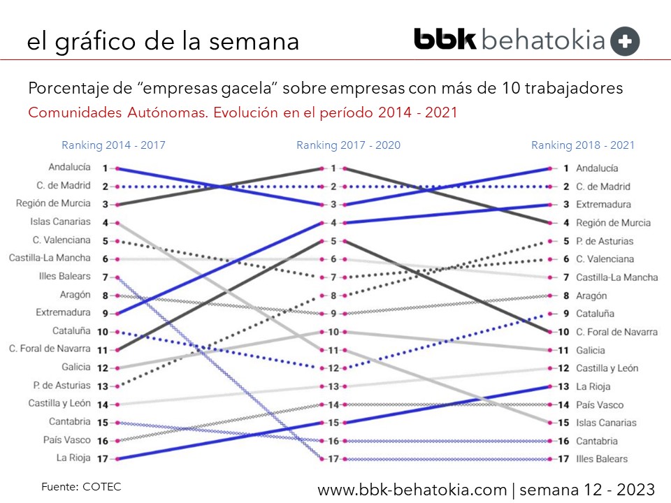 La Fundación COTEC ha publicado esta semana la tercera edición del «Observatorio de Empresas Gacela». Las gacelas quedan definidas por su rápido crecimiento, ya que, partiendo de un mínimo de 10 empleados, son capaces de duplicar su tamaño en tres años (creciendo por encima del 20% anual). De esta manera, la mayoría de ellas consigue pasar de pequeñas a medianas empresas.