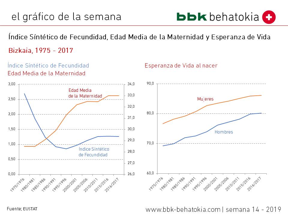 EUSTAT ha actualizado esta semana los datos de la operación estadística indicadores sintéticos demográficos (ID) en su ámbito anual. El Índice Sintético de Fecundidad según la edad media a la maternidad, el Índice Sintético de Nupcialidad según la edad media a la nupcialidad, o la esperanza de vida al nacimiento son producto de esta operación estadística de síntesis; los resultados se difunden por sexo y comarca en el ámbito de la C.A. de Euskadi.