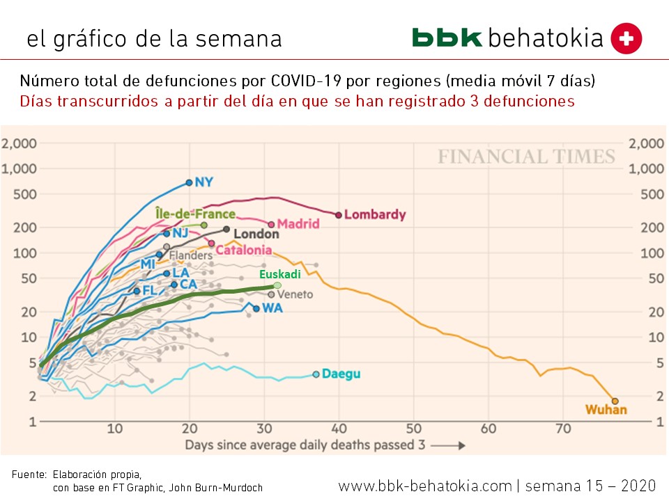 Si hace dos semanas incluíamos en este espacio el gráfico comparativo de Estados elaborado diariamente por Financial Times, en esta ocasión incluimos en de regiones, sobre el que BBK Behatokia ha añadido los datos relativos a Euskadi (Madrid y Catalunya son las dos únicas regiones de España que aparecen en el gráfico que elabora FT).
