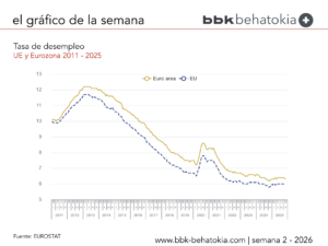 En noviembre de 2025, la tasa de desempleo ajustada estacionalmente de la zona del euro fue del 6,3 %, lo que supone un descenso con respecto al 6,4 % registrado en octubre de 2025 y un aumento con respecto al 6,2 % registrado en noviembre de 2024. La tasa de desempleo de la UE fue del 6,0 % en noviembre de 2025, estable en comparación con octubre de 2025 y superior al 5,8 % de noviembre de 2024. Estas cifras han sido publicadas por Eurostat, la oficina estadística de la Unión Europea.