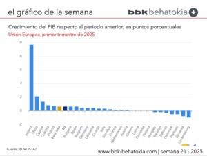 En el primer trimestre de 2025, el PIB ajustado estacionalmente aumentó un 0,6 % tanto en la zona del euro como en la UE, en comparación con el trimestre anterior, según una estimación publicada por Eurostat, la oficina estadística de la Unión Europea. En el cuarto trimestre de 2024, el PIB había crecido un 0,3 % en la zona del euro y un 0,4 % en la UE.