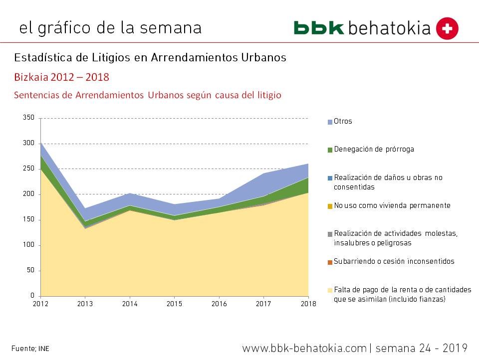 En Bizkaia, el incremento ha sido del 8%, siendo las principales razones de litigio la falta de pago de la renta y la denegación de la prórroga.