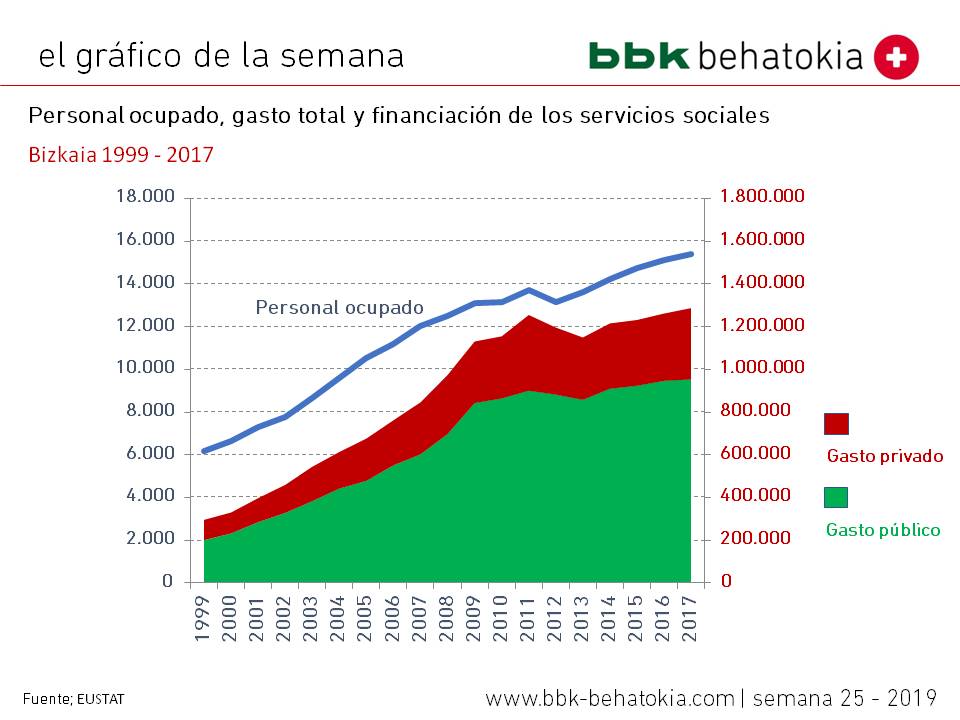 Los datos relativos a Bizkaia muestran un incremento constante del gasto y del personal ocupado en los mismos.