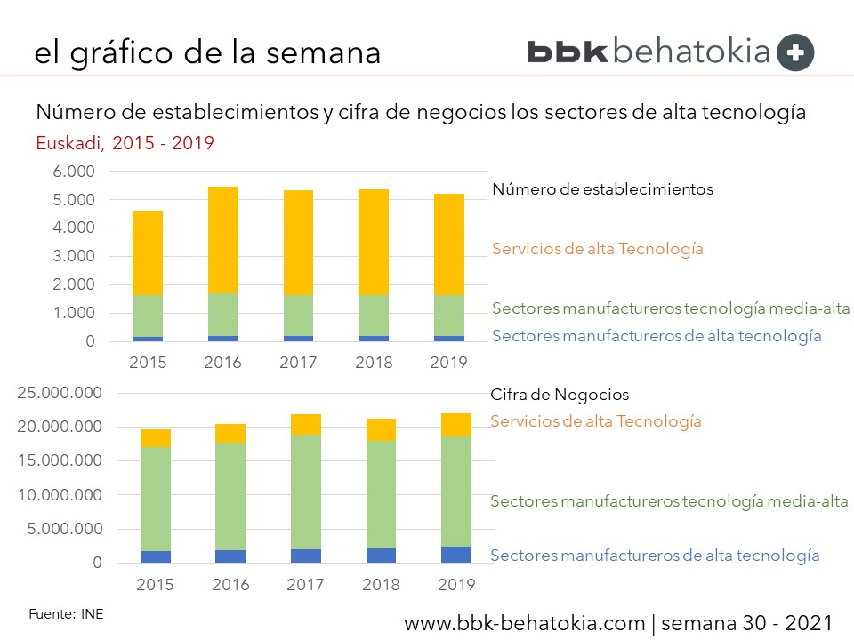 INE ha actualizado la estadística de Indicadores de Alta Tecnología, que en el conjunto del Estado incrementaron su volumen de negocio (empresas de alta y media-alta tecnología) en un 3,9%, hasta 287.962,1 millones de euros. También las exportaciones de productos de alta tecnología se incrementaron un 8,5% y las importaciones un 5,9%.