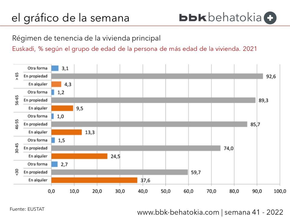 Aunque puede haber razones culturales en esta correlación, sin duda la dificultad de las personas jóvenes en adquirir una vivienda en propiedad queda patente en estos datos.