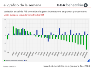 De los 19 países de la UE que, según las estimaciones, redujeron sus emisiones, 5 registraron un descenso de su PIB (Irlanda, Finlandia, Estonia, Letonia y Austria). Se calcula que los otros 14 países de la UE (Polonia, Dinamarca, Croacia, España, Bulgaria, Eslovaquia, Portugal, Hungría, Bélgica, Italia, Chequia, Países Bajos, Francia y Alemania) redujeron sus emisiones al tiempo que aumentaba su PIB.