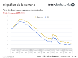 En octubre de 2024, la tasa de desempleo desestacionalizada de la zona del euro fue del 6,3%, estable en comparación con septiembre de 2024 y por debajo del 6,6% de octubre de 2023. La tasa de desempleo de la UE fue del 5,9% en octubre de 2024, también estable con respecto a septiembre de 2024 y por debajo del 6,1% de octubre de 2023. Estas cifras las publica Eurostat, la oficina estadística de la Unión Europea.