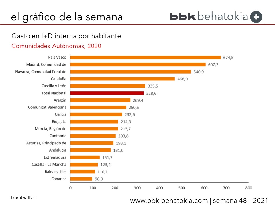 Las comunidades con mayor gasto en actividades de I+D interna por habitante fueron País