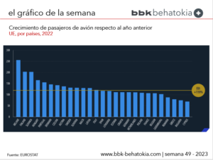 Los datos muestran que en 2022, todos los países de la UE registraron un aumento en el número de pasajeros transportados por transporte aéreo en comparación con 2021. Estos aumentos variaron entre los países de la UE, registrándose los mayores en Irlanda (+256%), Eslovaquia y Finlandia (ambos +203%). Los menores aumentos se registraron en Chipre (+69%), Bulgaria (+74%) y Grecia (+80%).