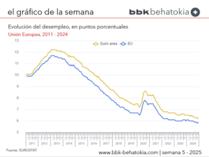En diciembre de 2024, la tasa de desempleo desestacionalizada de la zona del euro fue del 6,3%, frente al 6,2% de noviembre de 2024 y el 6,5% de diciembre de 2023. La tasa de desempleo de la UE fue del 5,9% en diciembre de 2024, frente al 5,8% de noviembre de 2024 y el 6,0% de diciembre de 2023. Estas cifras las publica Eurostat, la oficina estadística de la Unión Europea.