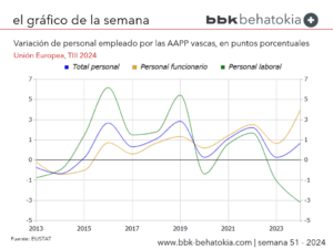 Las Administraciones Públicas Vascas (sin tener en cuenta el personal dependiente de la Administración del Estado y del Sistema de Seguridad Social) contaron con 149.104 personas trabajando a 1 de enero de 2024, según los datos elaborados por Eustat. La cifra de personal ocupado en las Administraciones Vascas aumenta 1,5% con respecto al año anterior.