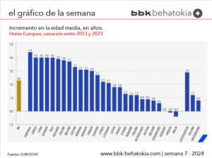 En cinco países de la UE, la edad mediana de la población aumentó 4 años o más. En Portugal la edad mediana aumentó 4,4 años, la mayor entre los países de la UE. Le siguieron Grecia, España, Eslovaquia e Italia, que registraron un aumento de 4,0 años.
