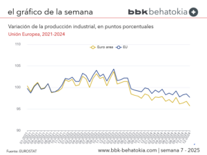 En diciembre de 2024, en comparación con noviembre de 2024, la producción industrial desestacionalizada disminuyó un 1,1% en la zona euro y un 0,8% en la UE, según las primeras estimaciones de Eurostat, la oficina estadística de la Unión Europea. En noviembre de 2024, la producción industrial creció un 0,4% en la zona euro y un 0,2% en la UE.