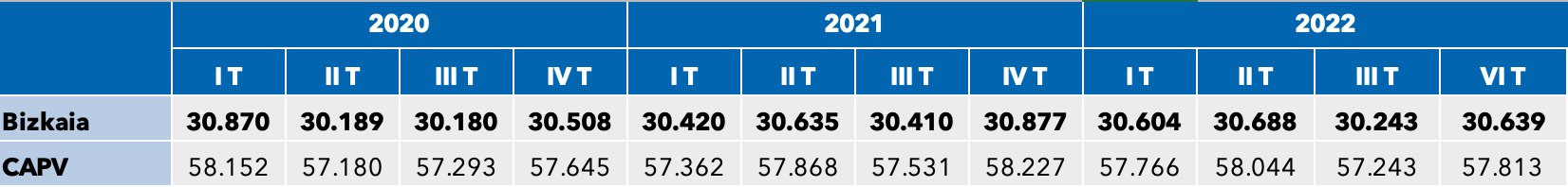 Aumenta ligeramente el número de empresas inscritas en la Seguridad Social durante el VI trimestre de 2022 en Bizkaia respecto al periodo trimestral anterior. Del mismo modo, en la CAPV tambiénse aprecia un leve crecimiento.