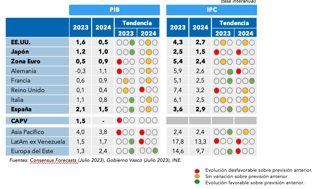 Fuente: Consensus Forecasts, Gobierno Vasco, INE.