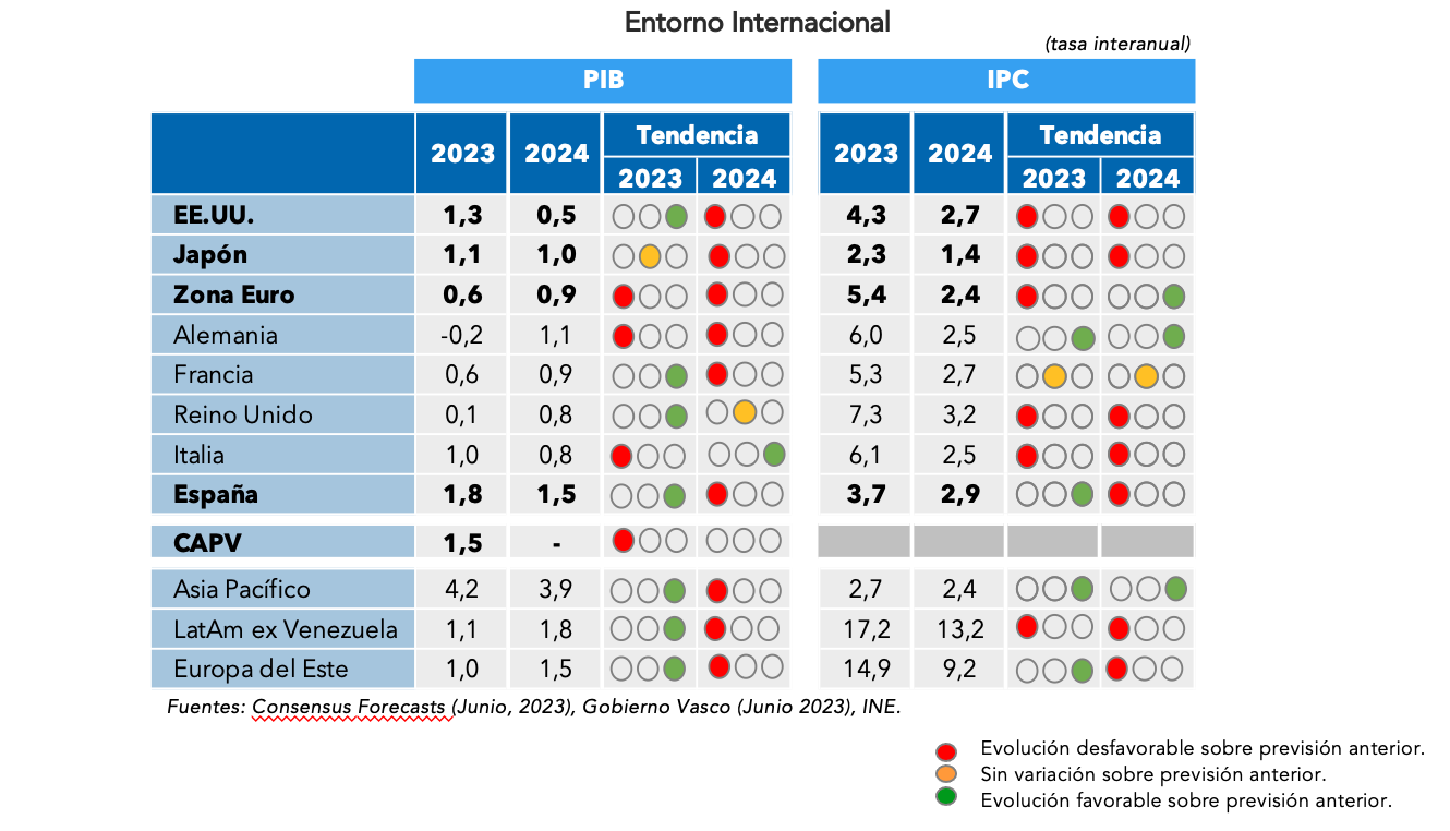 Fuente: Consensus Forecasts, Gobierno Vasco, INE.