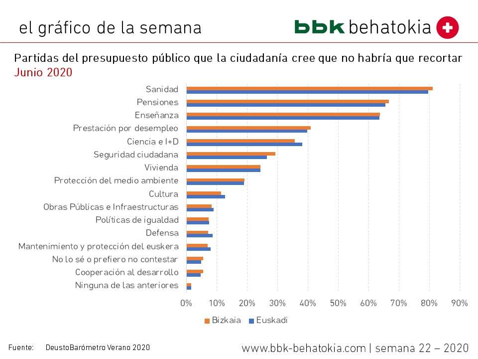 Osasuna, pentsioak eta irakaskuntza dira zerrendaburuak, eta langabezia-prestazioak eta I+G inbertsioak jarraian.