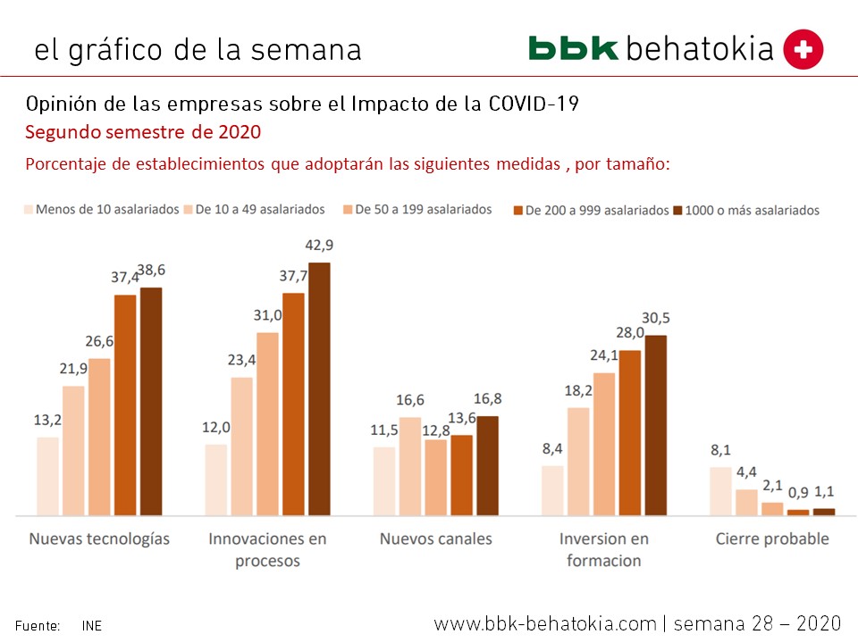 Hurrengo sei hilabeteei dagokienez, neurri horiek zabaltzea aurreikusten da, baina ehunekoak asko aldatzen dira enpresaren tamainaren arabera. Berriro ere, krisiak oso modu asimetrikoan eragingo dio gure ekoizpen-ehunari.