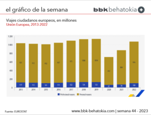 2022an, EBn bizi zirenek 1.080 milioi bidaia turistiko egin zituzten, gutxienez gaualdi batekin, hau da, +%23ko igoera (+202 milioi) 2021arekin alderatuta, hau da, 2020tik 2021era bitartean ere erregistratutako igoera bera.