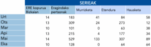 Oro har, datu horiek erakusten dutenez, espedienteen kopurua handitu ez den arren, enpresek irismen handiagoko doikuntzak aplikatu dituzte, eta horrek barne-berrantolaketaren aldi bat adieraz lezake.