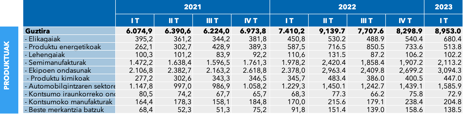 Esportazioek gora egin dute Euskal Autonomia Erkidegoan Datacomexek argitaratutako datuen arabera. Partidak banaka aztertuz gero, ekipoen ondasunak dira partida nagusia.
