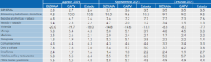 Estatistikako Institutu Nazionalak (EIN) urrian argitaratutako datuen arabera, Bizkaiak, EAEk eta Estatu osoak % 3,5eko urte arteko aldakuntza-tasa dute. Azpimarratu behar da elikagaien sektorea oso eragin-talde esanguratsua dela aztertutako hiru lurraldeetan. Hala ere, etxebizitzaren eta energiaren sektoreak indize negatiboak izaten jarraitzen du.