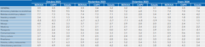 Estatistikako Institutu Nazionalak (EIN) urtarrilean argitaratutako datuen arabera, Bizkaiak, EAEk eta Estatu osoak % 3,6ko, % 3,5eko eta % 3,4ko urte arteko aldakuntza-tasa dute, hurrenez hurren. Azpimarratu behar dugu elikagaien sektorea oso eragin-talde esanguratsua dela aztertutako hiru lurraldeetan. Hala ere, etxebizitzaren eta energiaren sektorea harrigarria da hainbat alditan lehen aldiz izatea, termino positiboetan.