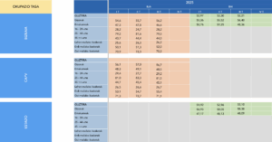 Eustaten Jarduerarekiko Loturiko Biztanleriaren Inkestaren (BJA) eta INEren Biztanleria Aktiboaren Inkestaren (BAI) azken datuen arabera, Bizkaiko enplegu-tasa %52,2koa da 2025eko hirugarren hiruhilekoan, bigarren hiruhilekoko %53,3aren azpitik pixka bat eta duela urtebete zegoen mailaren antzekoa; horrek enpleguaren hazkundean motelaldi arina adierazten du.