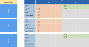 Eustaten Biztanleria Jardueraren Araberako Inkestaren (BJA) eta INEren Biztanleria Aktiboaren Inkestaren (BAI) azken datuen arabera, Bizkaiko enplegu-tasa %52,97koa da 2025eko lehen hiruhilekoan, 2023ko aldi bereko %51,3aren aldean, eta horrek enpleguaren hobekuntza arina erakusten du lurraldean.