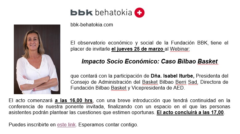 Impacto Socio Económico: Caso Bilbao Basket en directo, hoy a las 16:00 hrs 25 Mar 2021 | Comunicación, Eventos y Webinars