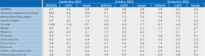 Según datos publicados por el Instituto Nacional de Estadística (INE) en el mes de octubre, Bizkaia, la CAPV y el conjunto del Estado presentan una tasa de variación interanual del IPC del 3.5%, 3.4% y 3,2% respectivamente. Resaltar que el sector de los alimentos se posiciona como grupo de influencia muy significativa en los tres territorios analizados. Sin embargo, el sector de la vivienda  y de la energía sigue situándose en índices negativos.