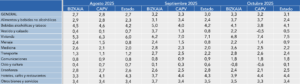 Según datos publicados por el Instituto Nacional de Estadística (INE) en el mes de octubre, Bizkaia, la CAPV y el conjunto del Estado presentan una tasa de variación interanual del IPC del 3,3%, 3,2% y 3,2% respectivamente. Estos datos suponen una muy ligera alteración respecto de los datos del mes anterior.