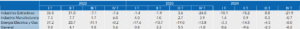 Según datos publicados por el Instituto Vasco de Estadística, EUSTAT, los sectores de industrias manufactureras muestran una variación negativa respecto al mismo periodo del año anterior. El sector energético refleja datos negativos.