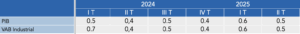 Según datos publicados por el Instituto Vasco de Estadística (Eustat), el primer trimestre de 2025 el PIB en la comunidad autónoma vasca ha crecido en términos intertrimestrales un 0.5%.