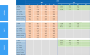 Atendiendo a los datos proporcionados por el instituto vasco de estadística y el instituto nacional de estadística, Eustat e INE respectivamente, con respecto al trimestre anterior, la tasa de actividad aumenta ligeramente en Bizkaia y aumenta en la CAPV según los datos de la PRA en el tercer trimestre del año. El crecimiento en la tasa de actividad es generalizado, a excepción del cuarto trimestre del año en el que se observa un leve declive.