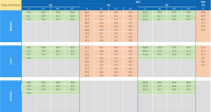 Atendiendo a los datos proporcionados por el instituto vasco de estadística y el instituto nacional de estadística, Eustat e INE respectivamente, con respecto al trimestre anterior, la tasa de actividad se mantiene estable en Bizkaia y en la CAPV según los datos de la PRA en el primer trimestre del año. El crecimiento en la tasa de actividad es generalizado, a excepción del cuarto trimestre del año pasado en el que se observa un leve declive.