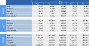 En cuanto a la edad, en Bizkaia el paro entre las personas menores de 25 años alcanzó las 5.298, mientras que el grupo de resto de edades sumó 55.176 personas.