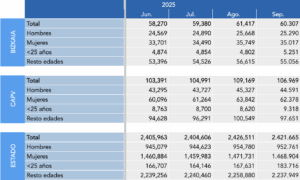 A nivel del Estado, el paro se situó en 2.421.665 personas, lo que supone un descenso mensual del 0,2 % y confirma la estabilidad del mercado laboral tras los meses de verano.