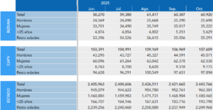 A nivel estatal, el paro registrado también creció en ese mismo periodo, pasando de 2.421.665 personas en septiembre a 2.443.766 en octubre.