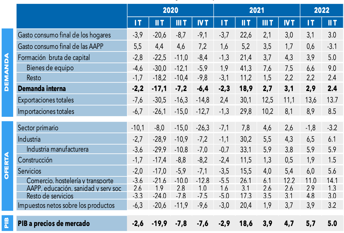 Según los datos publicados por el Instituto Vasco de Estadística, EUSTAT, en el componente de la demanda y en relación al mismo trimestre del año 2021, se refleja un crecimiento del 2,4 en la demanda interna.